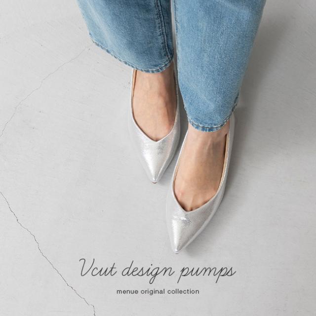 シンプルなフラットパンプスに、Vカットの履き口が足を華奢に演出。