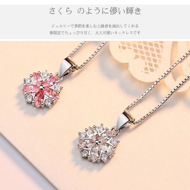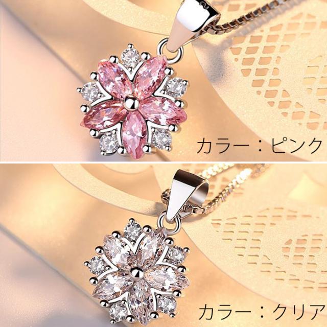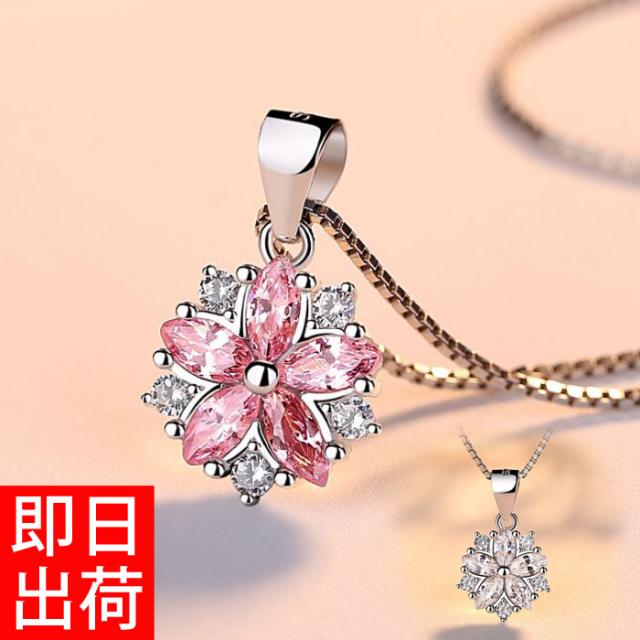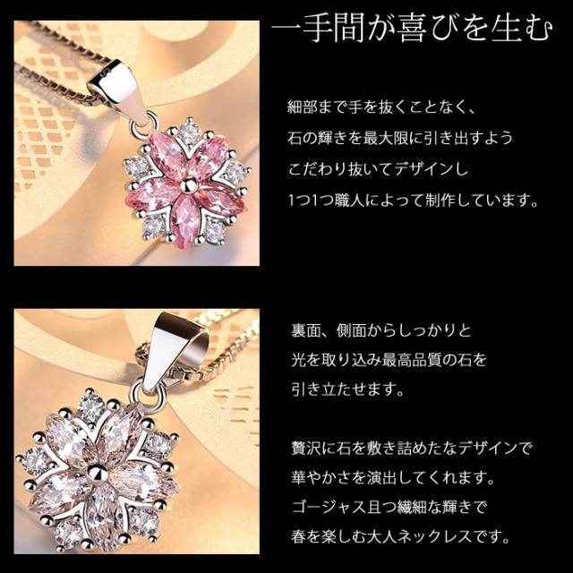 ネックレス レディース 豪華 計1.415カラット さくら 桜 サクラ sakura クリスマスプレゼント 女性 プラチナ仕上げ シルバー925 アクセサリー 春 女性 彼女 妻 クリスマス_wp