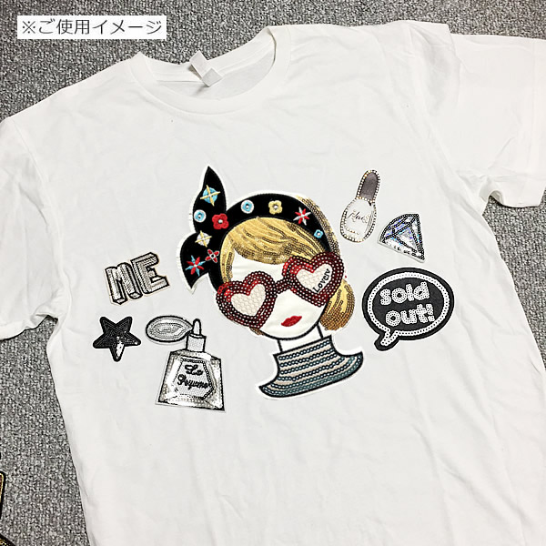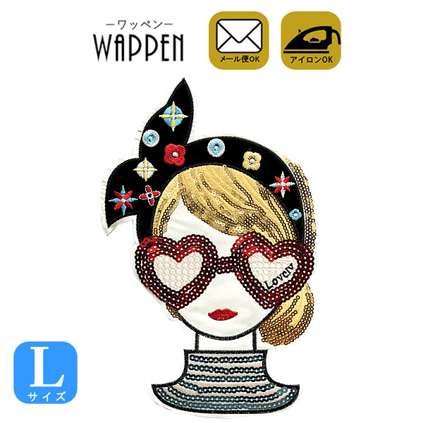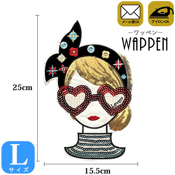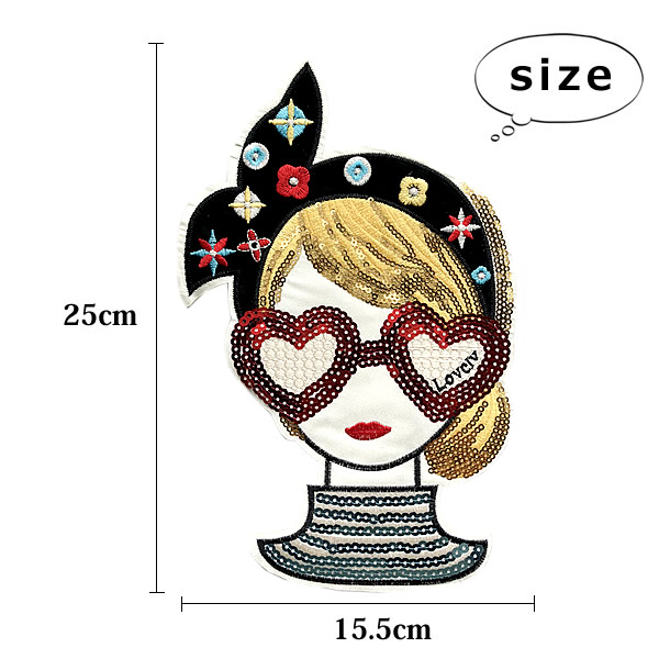 スパンコール ワッペン アイロン接着 縦25cm×横15.5cm Lサイズ ガール 女の子 アップリケ 手芸 可愛い ガーリー デコ 母の日 プレゼント ギフト