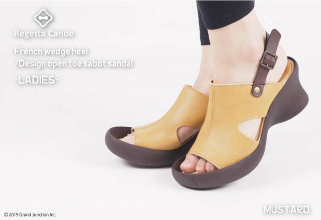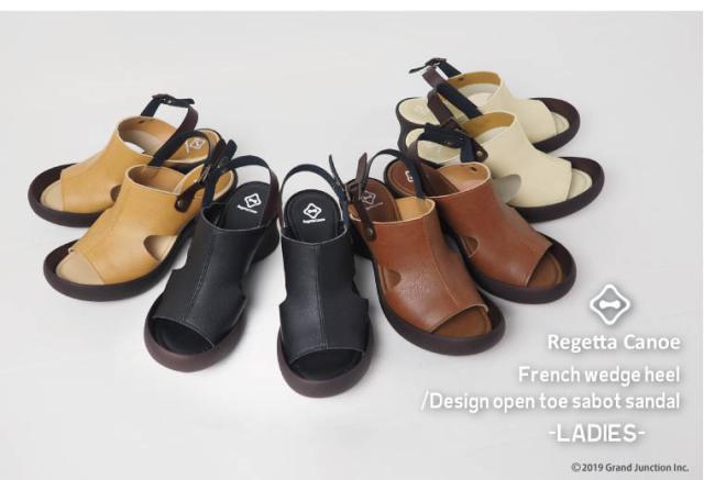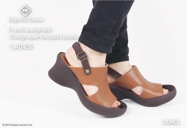 商品名:Regetta Canoe/リゲッタカヌー フレンチウェッジヒール デザインオープントゥ サボサンダル(レディース)