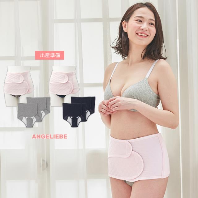 帝王切開後に必要な保護帯と、産褥ショーツ2枚がセットになった出産準備セットです。保護帯は、肌あたりが良くクッション性のあるキルティング素材。幅広ベルトが腹部全体を包み込み、しっかり傷口をガードします。ワンタッチテープで着脱も簡単。お腹をしっかり包み込む全開タイプの産褥ショーツは2枚セットになっているので洗い替えにも便利です。