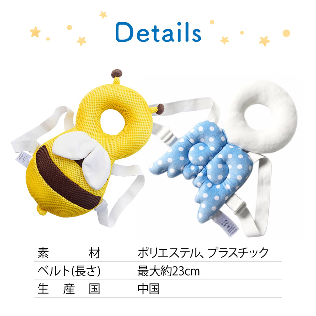 赤ちゃん 転倒 防止 クッション 頭 ヘッドカバー ヘルメット グッズ セーフティー ベビー みつばち 天使 baby-hp agesugi_snk