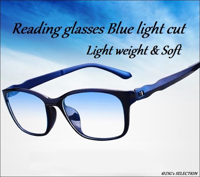 老眼鏡/ブルーライトカット/クリア/TR90〜軽量・ソフト/マットブラック×マットダークブルー/フルリム/眼鏡ケース付/男女兼用◆glrp00blu
