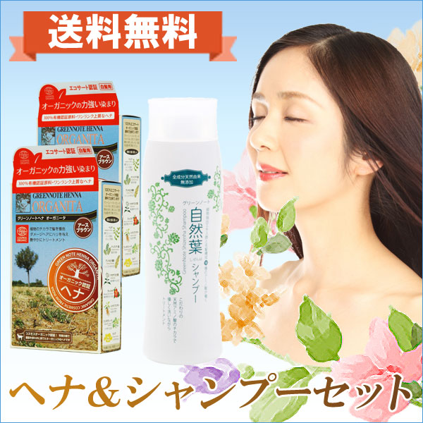 魅せる美髪セット(オーガニータ(アースブラウン)2個と自然葉シャンプー1本)【グリーンノート】【送料無料】〇