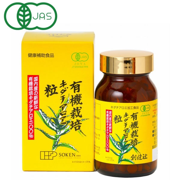 高知県産の新鮮な有機栽培キダチアロエの葉を100%そのまま乾燥粉末にしたものを粒状にしました。(粒の大きさ直径約8mm、厚み約5mm)ゼラチン・菜種硬化油などを使用せず、有機キダチアロエ粉末100%のみをそのまま加工しています。