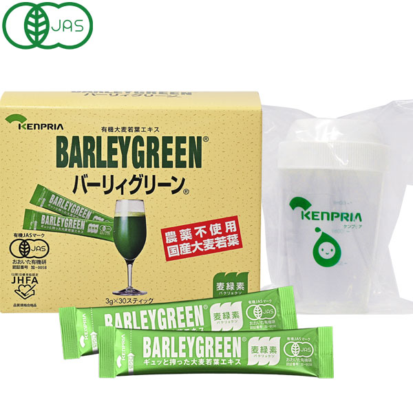【サンプルプレゼント】有機大麦若葉エキス バーリィグリーン初回セット(3g×30スティック/シェーカー付)【ケンプリア】【いつでもポイント10倍】【送料無料】
