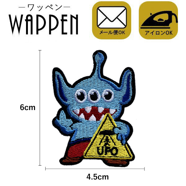 UFO ワッペン 刺繍 アイロン接着 縦6cm×横4.5cm アップリケ アイロンワッペン 手芸 デコ 手作り WAPPEN 母の日 プレゼント ギフト