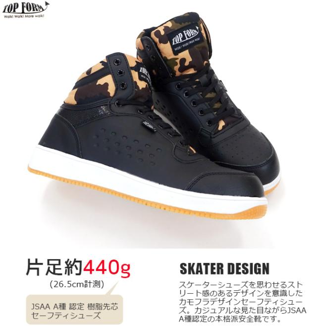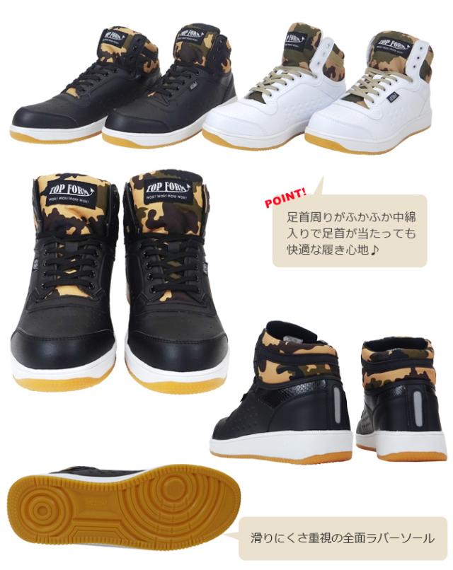 25.0-28.0cm 安全靴 スニーカー ミドルカット カモフラ TOP FORM セーフティーシューズ(MG-5670) 迷彩 メンズ