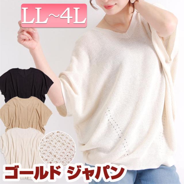 秋新作 大きいサイズ 大人カジュアル♪ Vネックドルマンサマーニットトップス 半袖トップス ドルマントップス サマーニット ニット カットソー 半袖カットソー ドルマン Vネック 春 夏 LL 2L 3L 4L LLサイズ 13号 15号 17号 ベージュ キャメル ブラック 黒 black