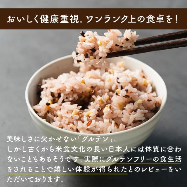 - 説明より水量を多くして玄米に入れてますが、食感も味も良くなり美味しく食べてます。 白米に入れても味の邪魔をしないので、家族も嫌がらずに食べてますよ。 グルテンフリーだし、繊維は多いし、助かります。