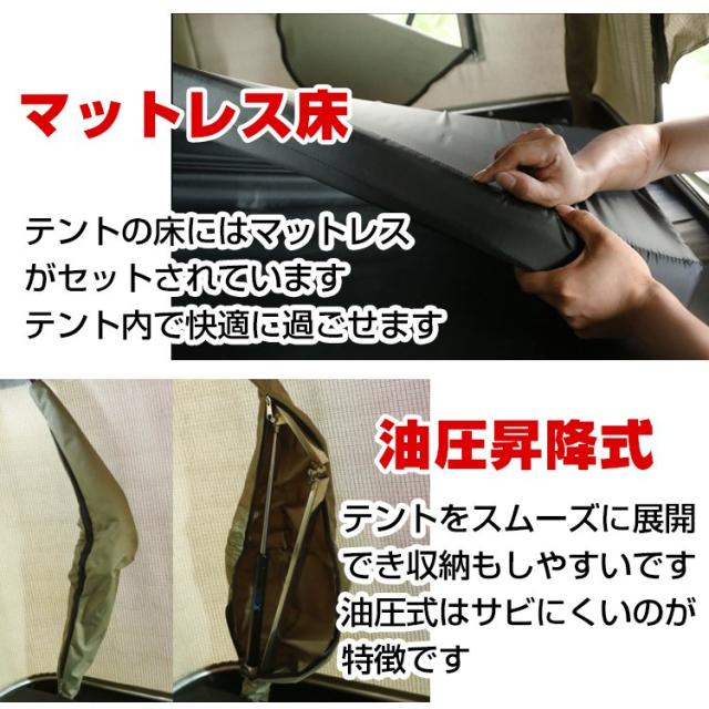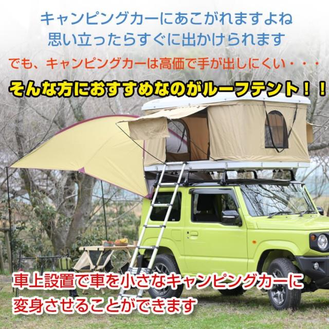 ■車上設置で車を小さなキャンピングカーに変身させることができるルーフテントです