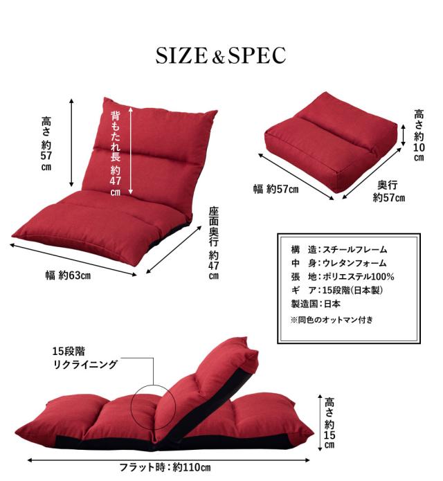 | カラー | レッド・ブラウン・ネイビー・グリーン ※オットマンセットは座椅子と同色のオットマンが付属されます。 |