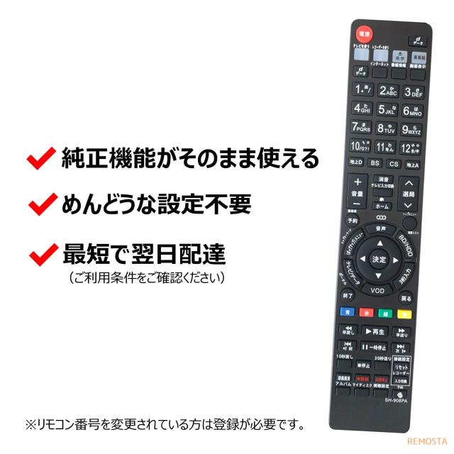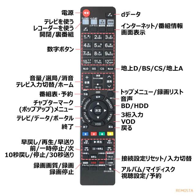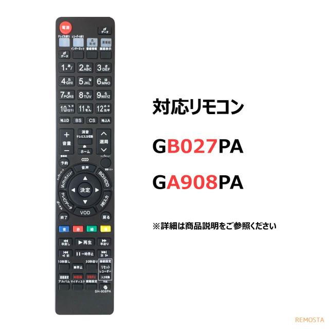 シャープ アクオス ブルーレイ リモコン GA908PA GB027PA BD-HDS63 BD-HDS65 BD-HDW63 BD-HDW65 BD-HW51 SHARP AQUOS レコーダー 代用リモコン