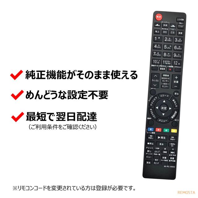 三菱 テレビリモコン RL18501 RL18502 RL18503 RL19501 RL19701 RL18904 RL18901 代用リモコン MITSUBISHI
