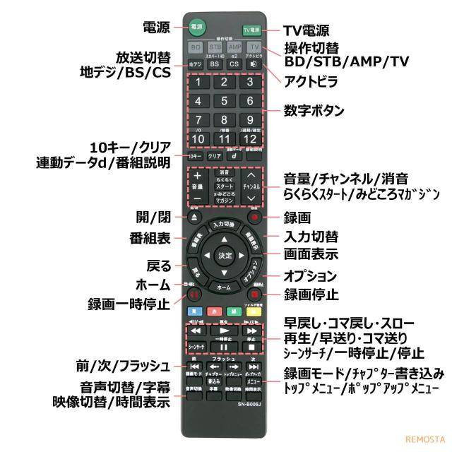 ソニー ブルーレイ リモコン RMT-B006J BDZ-RS15 BDZ-RX35 BDZ-RX55 BDZ-RX105 SONY レコーダー 代用リモコン