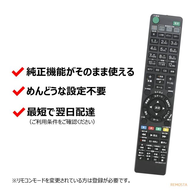 ソニー リモコン ブルーレイ RMT-B007J RMT-B009J RMT-B012J RMT-B013J RMT-B014J SONY レコーダー 代用リモコン リモスタ