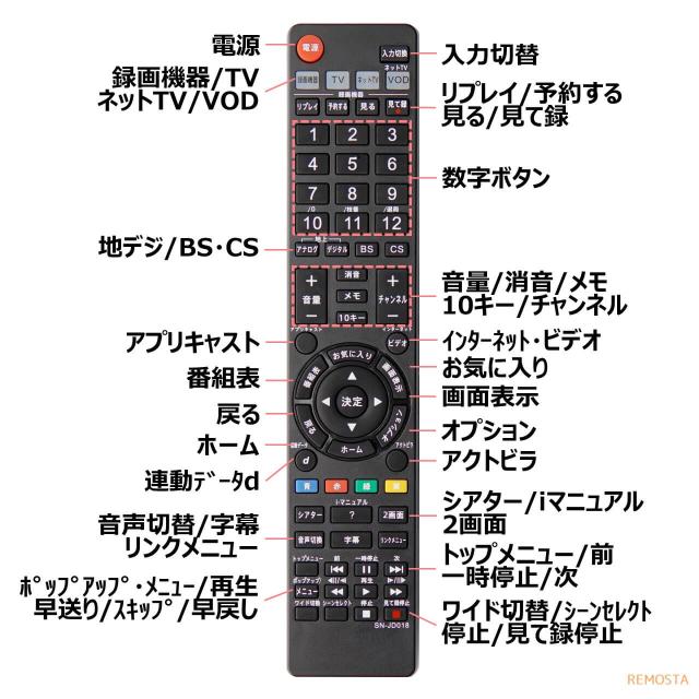 ソニー テレビ リモコン ブラビア RM-JD010 RM-JD011 RM-JD013 RM-JD016 RM-JD017 RM-JD018 RM-JD019 RMF-JD002 RMF-JD004 代用リモコン リモスタ