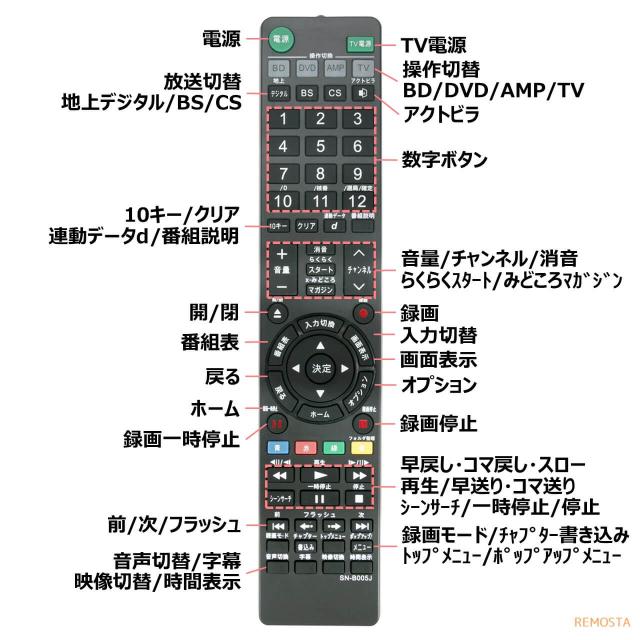 ソニー リモコン ブルーレイ RMT-B005J 148752112 BDZ-EX200 BDZ-RS10 BDZ-RX30 BDZ-RX50 BDZ-RX100 SONY レコーダー 代用リモコン