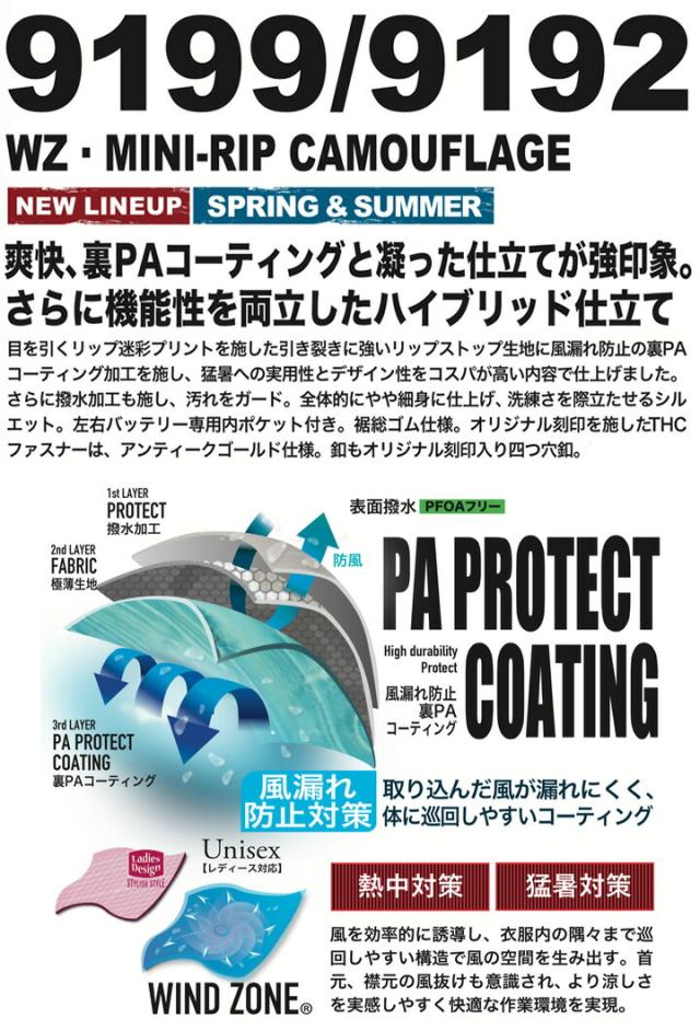 【空調服】ファン対応ウェア ベスト 迷彩 WZ ミニリップ 迷彩ベスト 9192 カモフラ 中国産業【服のみ】 WINDE ZONE 作業服 作業着 電動ファン対応作業服