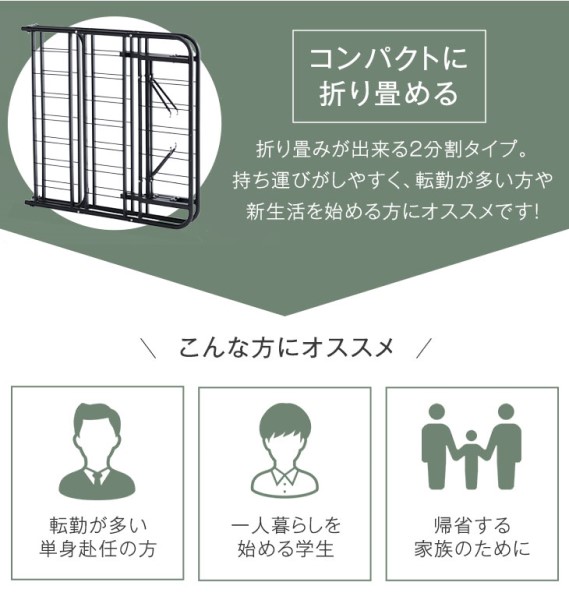 ベッドフレーム シングル 折りたたみらくらくスチール コンパクト パイプベッド スチールベッド アイアンベッド 折りたたみベッド 折り畳みベッド シングルベッド シングルベット ベッド S 折りたたみ 折り畳み 軽量 ベッド下収納 おしゃれ