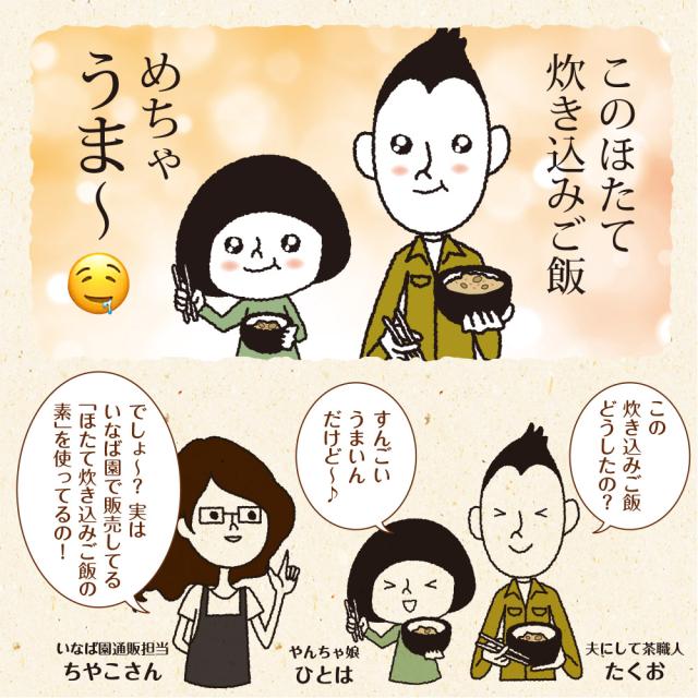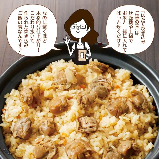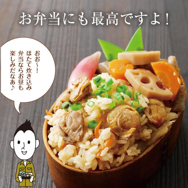 [具材]帆立貝(北海道産)、人参、醤油、牛蒡、砂糖、発酵調味液、酵母エキス、(一部に小麦・大豆を含む)