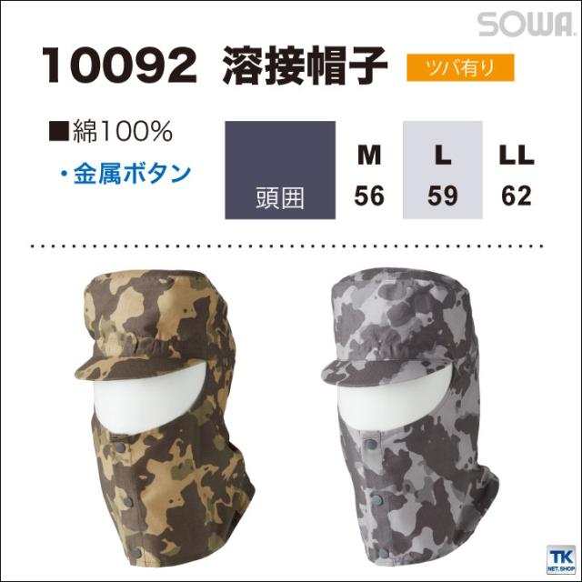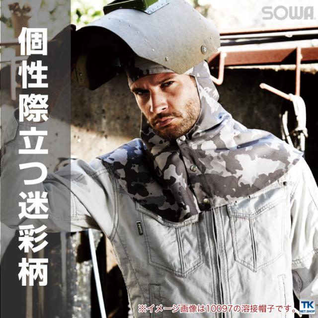 溶接帽子 溶接ぼうし ツバ有り・たれ無し 迷彩 防炎 頭巾 作業服 作業着 綿100% SOWA 帽子 sw-10092