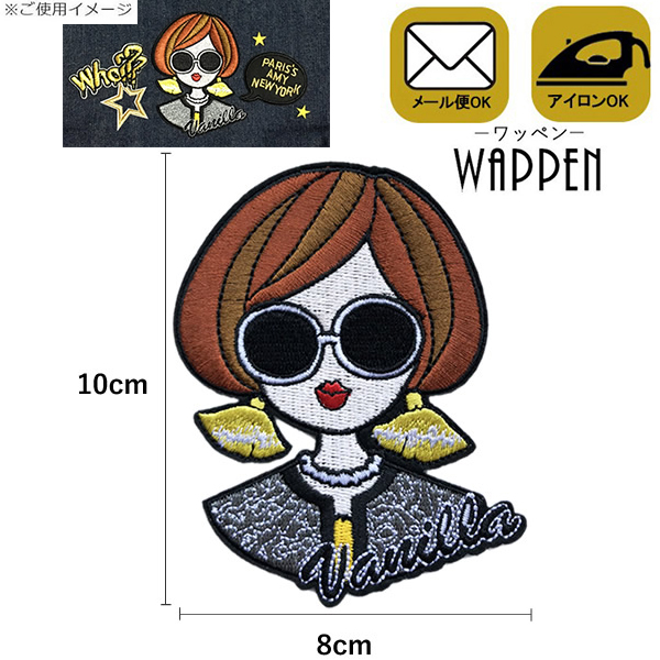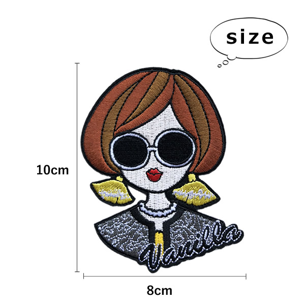 ガール ワッペン 刺繍 アイロン接着 縦10cm×横8cm 女性 アップリケ アイロンワッペン 手芸 かわいい おしゃれ 母の日 プレゼント ギフト