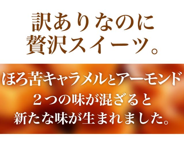 - 訳ありとの事でしたがとても綺麗な商品でした。 味も美味しかったです。キャラメルが多く、アーモンドが少ないことが残念。 量はたっぷりあるので嬉しいです。