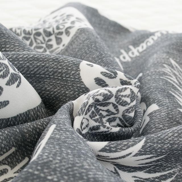 デニム風のプリントが映える、しっかりとした質感のオックスフォード織り。