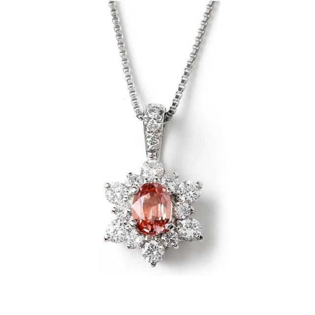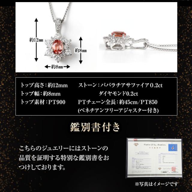 パパラチアサファイア ネックレス レディース PT プラチナ Pt900 鑑別書 プラチナネックレス 天然石 希少石 カラーストーン 色石 ペンダント ダイヤモンド ダイヤ メレダイヤ ギフト 彼女 妻 誕生日 限定BOX クリスマス プレゼント 女性 アクセサリー