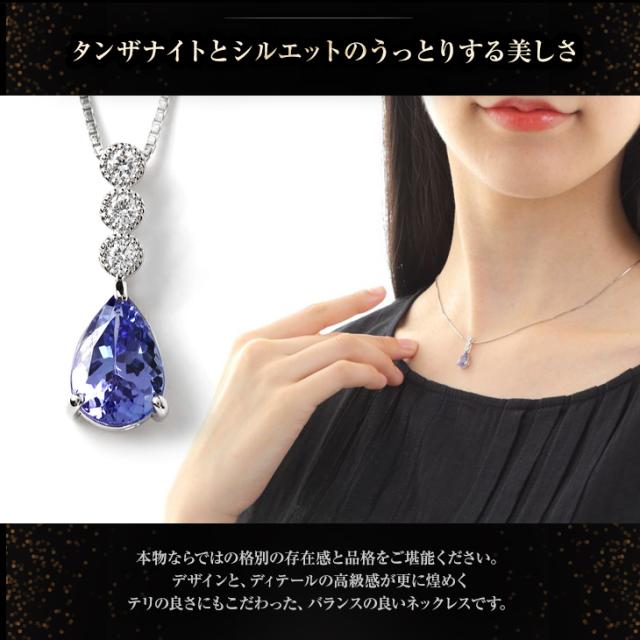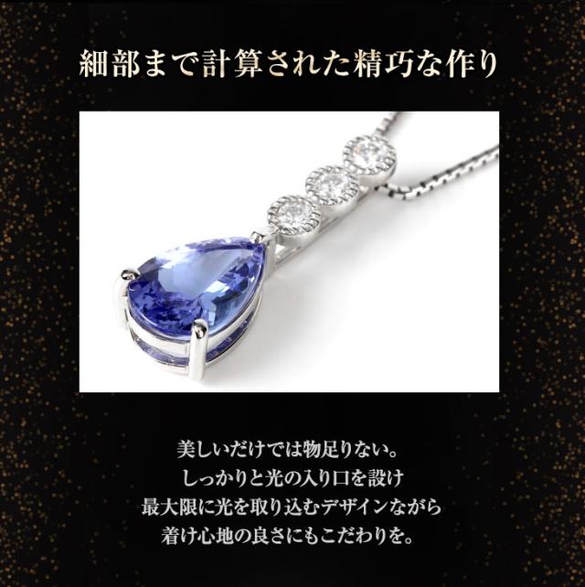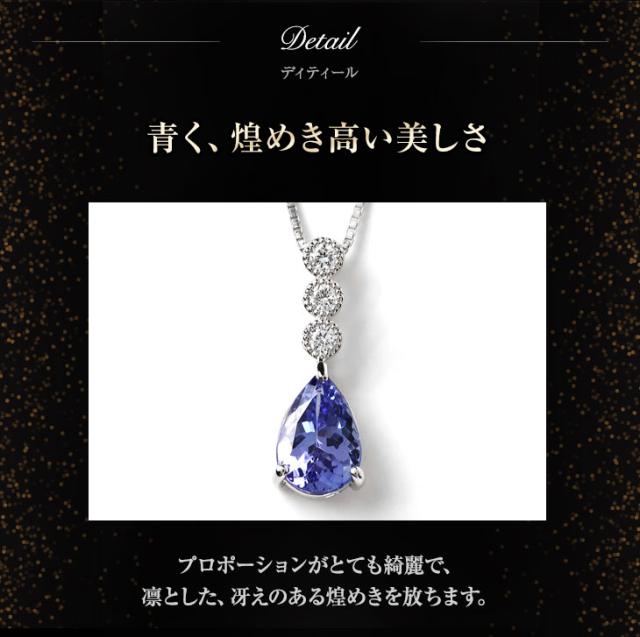 【希少石×天然ダイヤモンド】多色性を持ち、見る角度や身に着ける場所などで多くの表情を魅せる神秘的なレアストーンのタンザナイトネックレス。バチカン部分にも天然ダイヤを配石しプラチナチェーンの煌きをプラスしたペンダントは、ご自身へのご褒美はもちろん、彼女や妻へのプレゼントなど、大切な方への贈り物にもおすすめです。普段使いのカジュアルなスタイルからパーティーシーンまで幅広く活躍してくれます。【無料ギフト包装】クリスマスプレゼント・プロポーズ・誕生日プレゼント・結婚のお祝いや記念日に。またホワイトデー・母の日、お嬢様への卒業や入学のお祝いなどのプレゼントとしても人気の商品です。