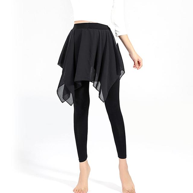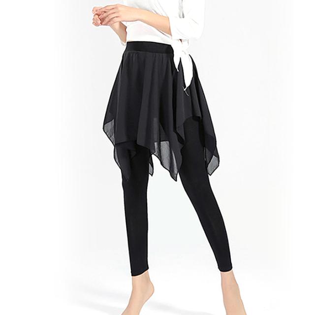 スカート付き レギンス レディース 10分丈 薄手 ストレッチ 大きいサイズ シフォンスカート 一体型 透け感 スパッツ バレエ ダンス 美脚 細見え ボトムス va4