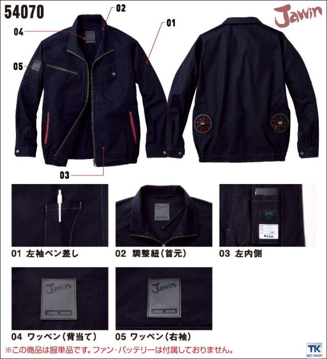 空調服R Jawin 綿100% 作業服 長袖ブルゾン おしゃれ 自重堂 メンズ 空調ウェア 長袖 春夏 空調作業服 単品 jd-54070-t