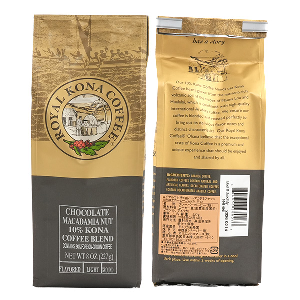 ロイヤルコナコーヒー ROYAL KONA COFFEE チョコレートマカダミアナッツ 227g 中挽き ハワイ コーヒー フレーバー コーヒー 珈琲 coffee プチギフト 贈り物 プレゼント 引っ越し祝い 粉末 お家時間 おうち時間 coffee おうちカフェ 自宅で cafe カフェ気分 水出しコーヒー