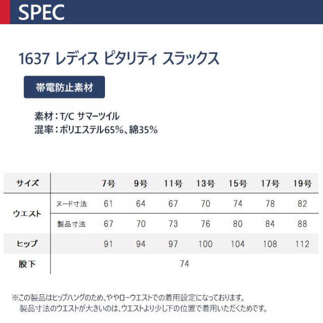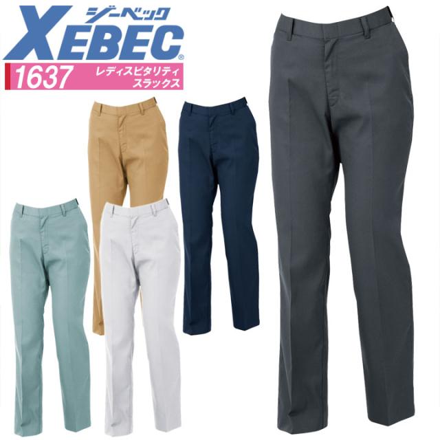 スラックス ジーベック 1637 帯電防止 レディースピタリティスラックス パンツ ズボン 女性用 作業服 作業着 春夏 ユニフォーム 7号-19号 1634シリーズ XEBEC