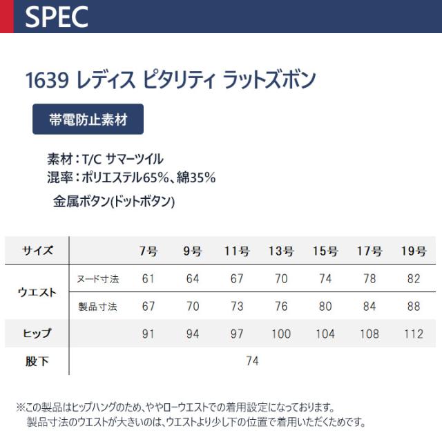 ラットズボン ジーベック 1639 帯電防止 レディースピタリティラットズボン パンツ 女性用 作業服 作業着 春夏 ユニフォーム 7号-19号 1634シリーズ XEBEC