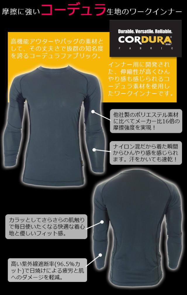 | ALPHA-FORCE(アルファフォース)の軍服やカバンに使われる高強度素材コーデュラナイロンを使用したクールボディフィット長袖シャツです。 耐久性が高く、同目付けのポリエステルベア天竺と比較し、擦れの強さは16倍の強度です(メーカー比)。 ほどよいゆるピタ着圧で、なめらかな肌触りの着た瞬間からひんやり涼しい「接触冷感機能」、乾きが速くベタつかない「吸汗速乾機能」、高い紫外線遮断率とUPF値で有害な紫外線から守る「UVカット機能」がついています。 ハードな現場やスポーツ、アウトドアに最適な夏場に大活躍のアイテムです。 | ||||||