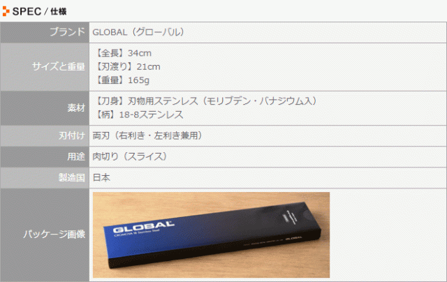 GLOBAL(グローバル) スライサー21cm G-3 刃渡り21cm 包丁 オールステンレス 日本製