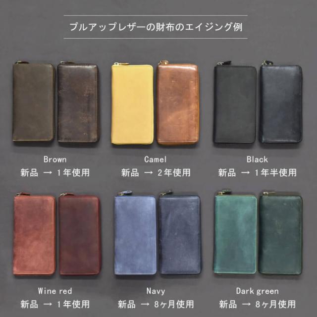 全面に使用しているプルアップレザーは、マットな質感と使い込むはど本革ならではのエイジング(経年変化)も楽しめます。あなただけの風合いに変化していく様子をぜひお楽しみください。