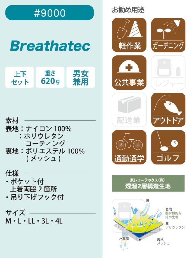 レインスーツ アーヴァン #9000 Breathatec 上下セット レインウエア 合羽 長袖 男女兼用 アウトドア ガーデニング 軽作業 配送業 作業着 M-3L