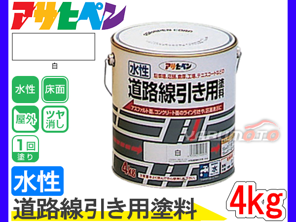 アサヒペン 水性 道路線引き用 塗料 4kg 白 アスファルト コンクリート 床 屋内 屋外 工場 倉庫