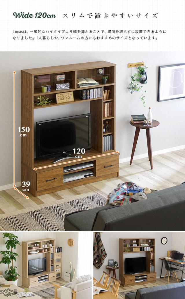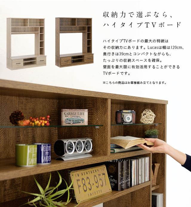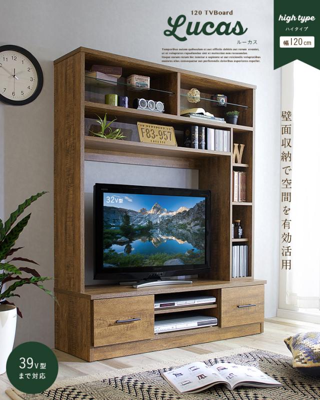 テレビボード テレビ台 幅120cm TVボード TV台 ハイタイプ 収納付き 39v型まで対応 大容量収納 リビング 可動棚 収納棚 スリム Lucas(ルーカス) 2色対応 おしゃれ