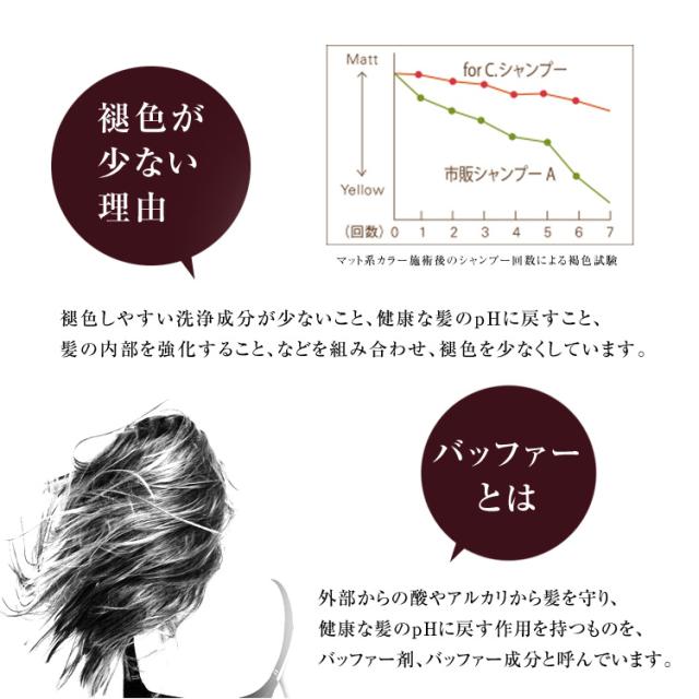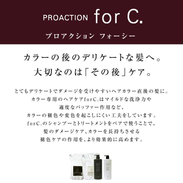 | 商品説明 | カラーは流さずに、汚れだけを洗い落とす。 定着したカラーはそのままに、髪表面の汚れだけを洗い流す。それがカラーヘアーのために生まれたforC.シャンプーの大きな特徴です。カラーリングの後のセンシティブな髪をいたわり、髪を健康な状態に近づけながら、カラーの褪色を遅らせます。 その他のサイズはこちら↓ →プロアクション フォーシー シャンプー 170ml →プロアクション フォーシー シャンプー 3000ml (業務用) プロアクションフォーシーシャンプーはトリートメントとセットでのご使用をおススメします。 トリートメントの各サイズはこちらから↓ ・プロアクション フォーシー トリートメント 150g ・プロアクション フォーシー トリートメント 1000g ・プロアクション フォーシー トリートメント 3000g (業務用) →その他のForC (フォーシー) シリーズの一覧はこちら← |