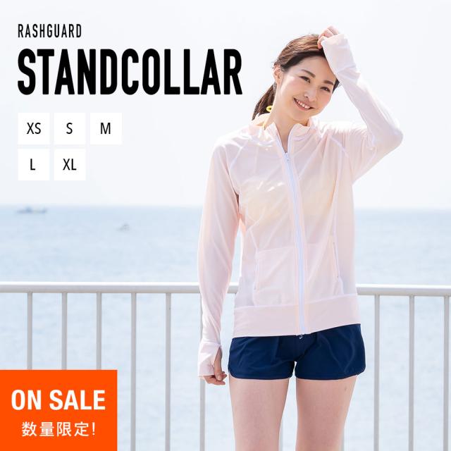 SALE ラッシュガード レディース スタンドカラー 数量限定 立ち襟 水着用 フードなし 長袖 体型カバー UV 日焼け対策