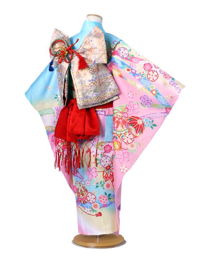 レンタル 四つ身 着物 花ひめ ブランド 七五三 7歳 貸衣装 水色 絵羽柄 鞠 熨斗