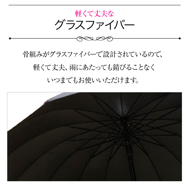16本の骨で丈夫な作りになっており、強風にも耐えやすい傘です。
