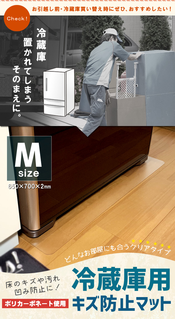 冷蔵庫 マット 透明 冷蔵庫用 キズ防止マット 傷防止 傷 凹み 防止マット ポリカーボネート 〜500Lクラス クリアタイプ 床暖房対応 引っ越し 新生活 冷蔵庫 下 マット 冷蔵庫下 フローリング 保護 使用汚れ 防止 冷蔵庫マット Mサイズ