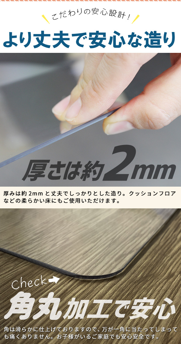 安心してお使いいただけるよう側面は角丸加工を施しております。