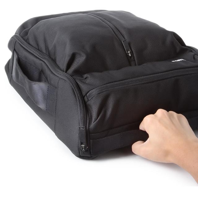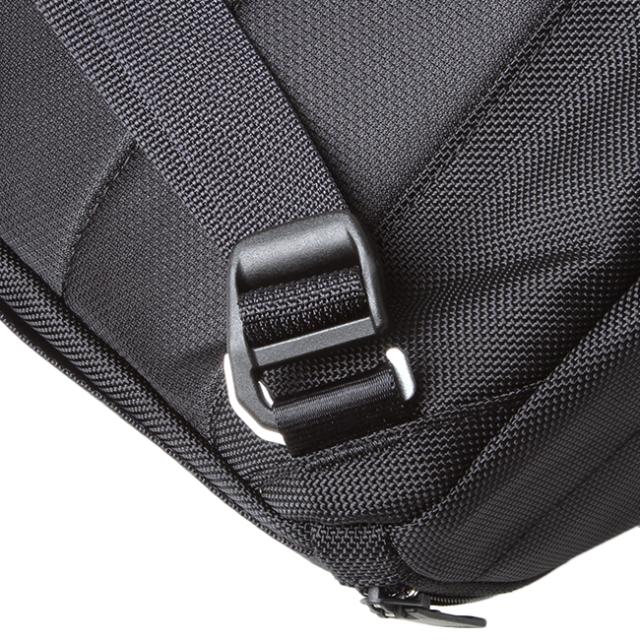 スマートフォンやタブレット端末の普及によって近年確立した、ビジネスシーンにおけるリュックスタイルに着目した"アップサイド"シリーズ。とっさに身に着けたときにどのように身に着けても開閉がしやすく開閉時の煩わしさを解消。