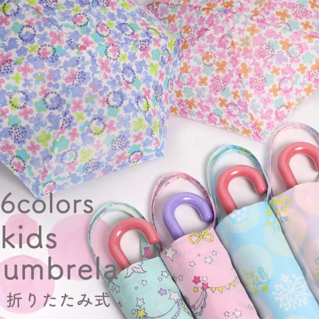 折りたたみ傘 子供用 女の子 簡単 軽量 55 センチ 傘 [ 子供 小学生 折り畳み傘 子ども こども キッズ ジュニア 花柄 手開き 6本骨 ブルー ピンク Petit Angelina ]